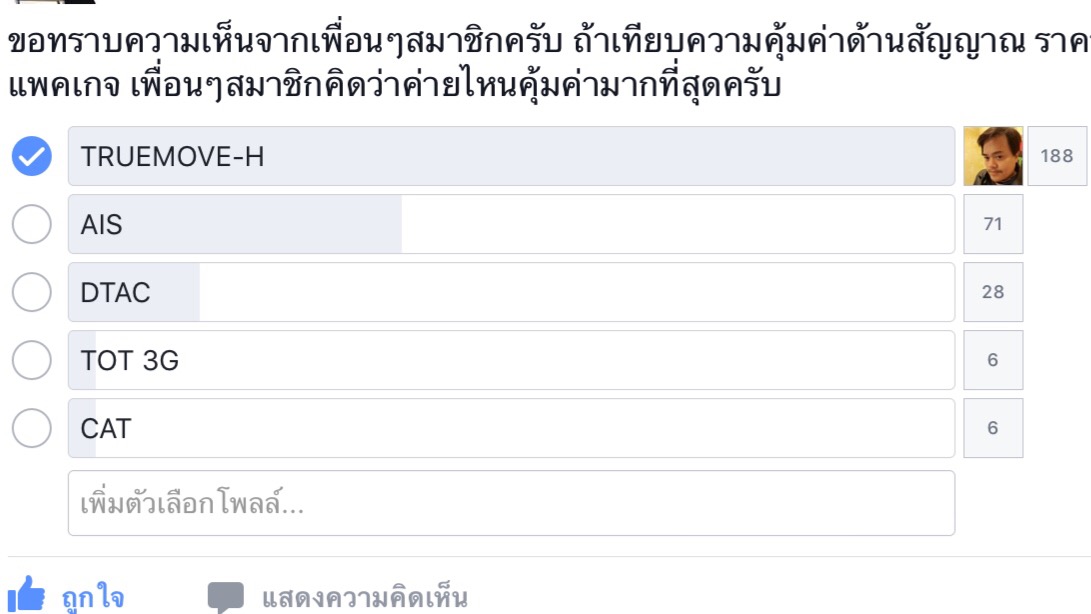 มาดูผลโพลเรื่องสิทธิพิเศษแต่ละค่ายกัน จากเพจกลุ่มคนรักเสามือถือครับ