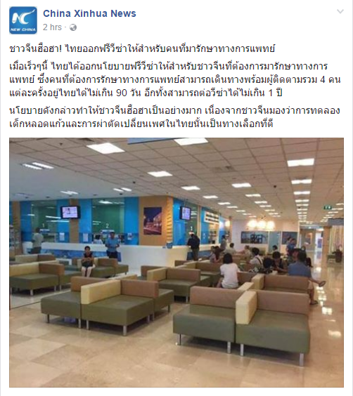 ข่าวดีกลุ่มโรงพยาบาล? ไทยออกฟรี Visa ให้คนจีนมาใช้บริการทางการแพทย์