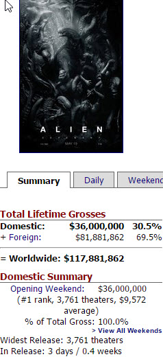 รายได้ "เอเลี่ยน โคเวแนนท์"