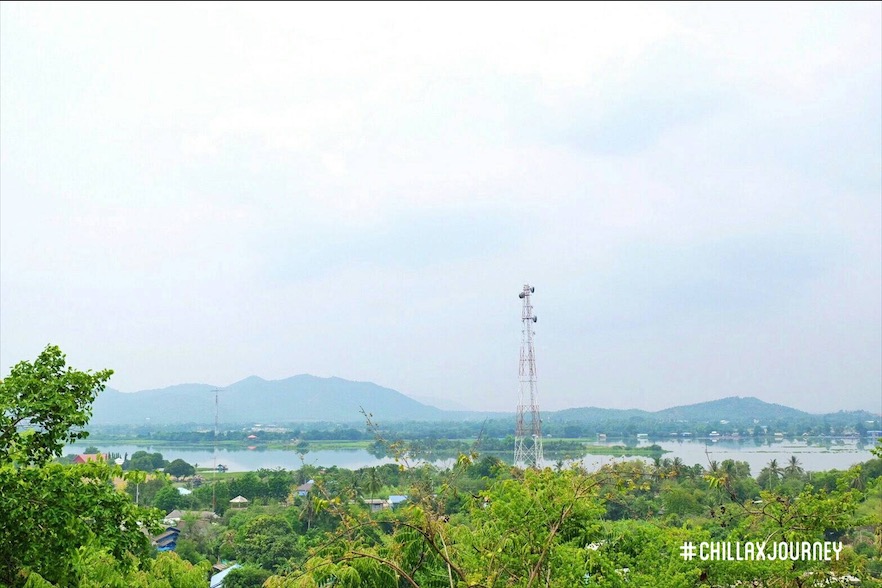 วิวจากด้านบน เห็นภูเขาและแม่น้ำแม่กลอง