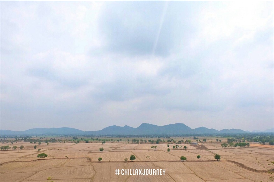 ส่วนด้านหลังนี่เป็นทุ่งนา ลองคิดภาพตามนะคะ ถ้าเป็นทุ่งนาสีเขียวเต็มทุ่ง คงจะสวยมาก แต่เนื่องจากช่วงนี้เป็นหน้าร้อน เลยเหลือแต่ความแห้งแล้ง ฮือออออ.. (ไปมาช่วงวันหยุดวันแรงงานค่าา)