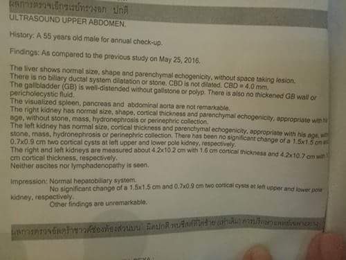 ก็ถามพ่อว่าซีสต์มีขนาดกี่เซ็นพ่อบอกไม่รู้ แต่หมอบอกเท่าเดิมไม่ได้โตขึ้น เลยถ่ายรูปผลการตรวจมาให้ดู มันมีบอกไหมคะว่าซีสต์ขนาดเท่าไหร่ เป็นภาษาอังกฤษทั้งหมดอ่านไม่ออกเลยคะ รบกวนด้วยคะ ขอบพระคุณมากๆๆคะ