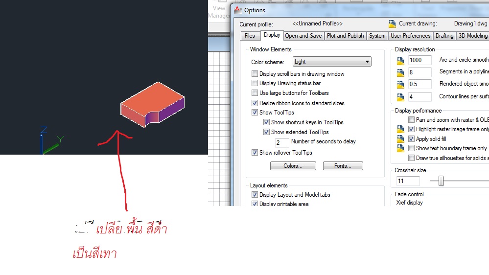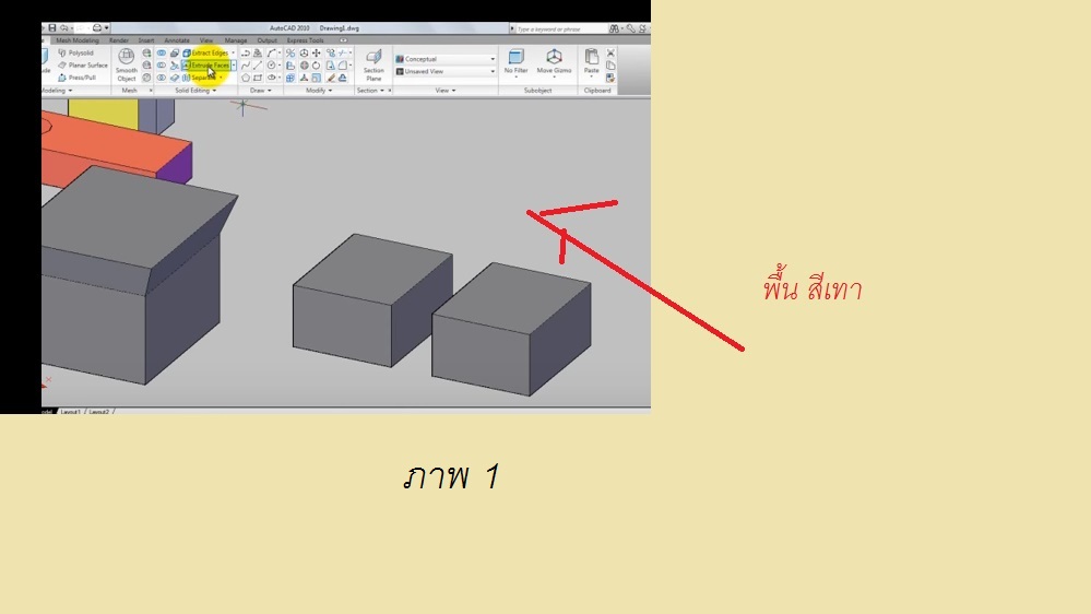 autocad เวลา ดู ภาพ เเบบ conceptual พื้นสีดำ ต้องการเปลี่ยนพื้นเป็น สีเทา เเบบภาพ 1