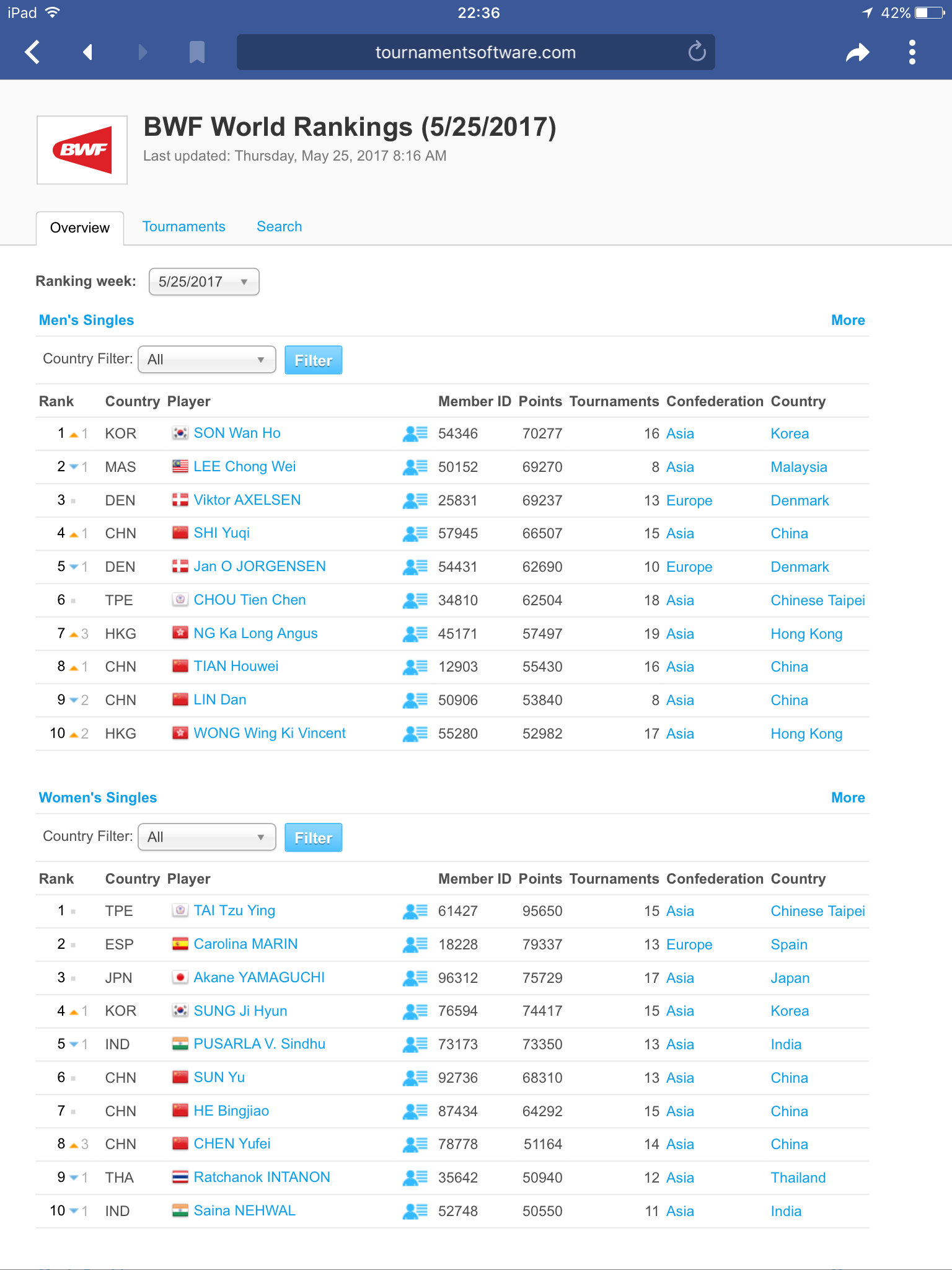 ซอนวันโฮ ขึ้นเป็น world number 1