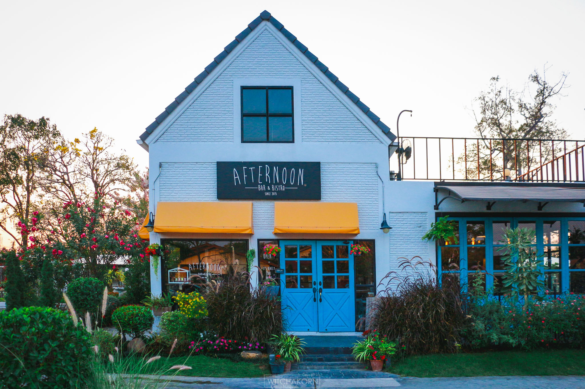...มาเจอร้านนี้ครับ Afternoon Bar & Bistro เป็นร้านแถวชานเมือง ร้านสวยด้านในน่ารักน่านั่ง ที่สำคัญแบ่งเป็นสัดส่วนค่อนข้างดี และแน่นอนต้องถูกใจสาว ๆ เพราะติดกับสนามหญ้าเทียม นั่งจิบกาแฟ ขนม นม อร่อย ๆ มองหนุ่ม ๆ เพลินเลยครับ มาดูบรรยากาศร้านเลยดีกว่า