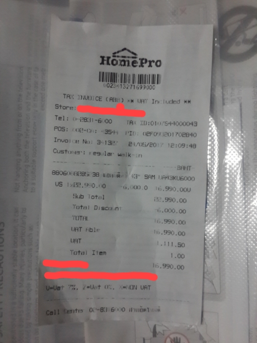 เพิ่งซื้อ Samsung Smart TV รุ่นดังกล่าวมาจาก Home Pro เมื่อวาน วันแรกที่ใช้ก็ปกติดีทุกอย่าง แต่พอมาวันนี้ช่วงเย็น ๆ กลับมีอาการติด ๆ ดับ ๆ มีแสงวาบขึ้นมาบนหน้าจอระยะสั้น ๆ แล้วก็ดับไป เลยลองเปลี่ยนเต้าเสียบไฟดู ปรากฎว่าอาการยังเป็นเหมือนเดิม เลยคิดว่าจะต้องส่งกลับให้ทาง Home Pro เปลี่ยนเครื่องใหม่มา