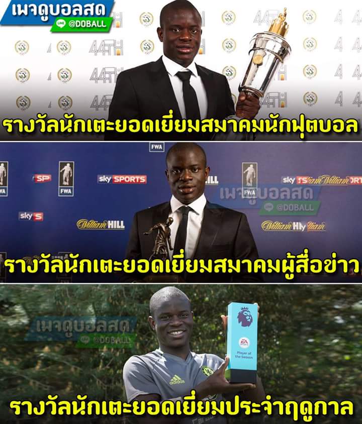 ก็องเต้ นักเตะ30ล้านปอนด์ คว้า 3 รางวัลนักเตะยอดเยี่ยมแห่งปี 2017