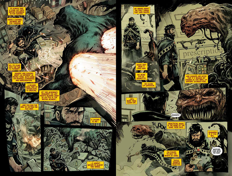ผ่านไปสองสัปดาห์ในดาร์คฟอร์ซไดเมนชั่น ด็อกเตอร์สเตรนจ์ยังคงสู้กับปิศาจต่อไป…โดยไม่อาบน้ำ