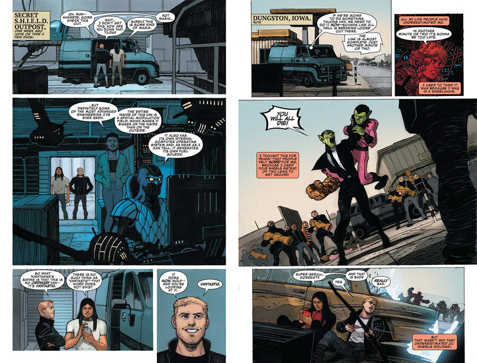 ย้อนไปสัปดาห์ก่อน พวกคลินท์เจอรถตู้เจ๋ง ๆ ในฐานลับของชิลด์เลยเอามาใช้ พอปัจจุบัน วีลส์กำลังจะเชื่อมจิตเข้ากับรถตู้เพื่อหยุดยั้งซูเปอร์สครัลล์ที่กำลังจะฆ่าพวกสครัลล์ที่รักสงบ (มั้ง ยังไม่ชัวร์ว่าสาเหตุที่ฆ่าคืออะไร)