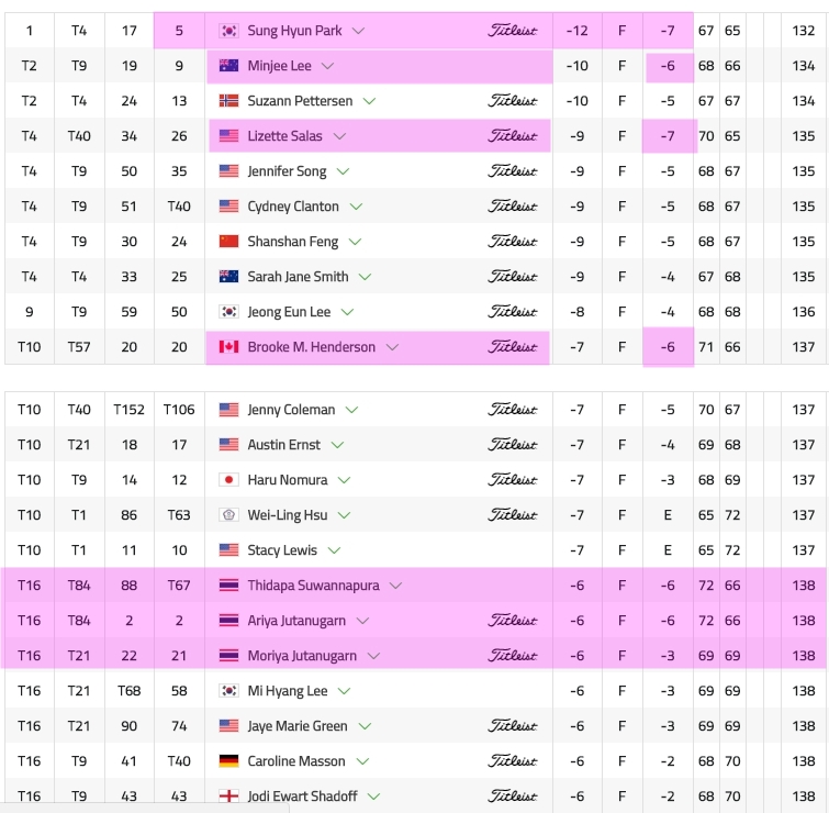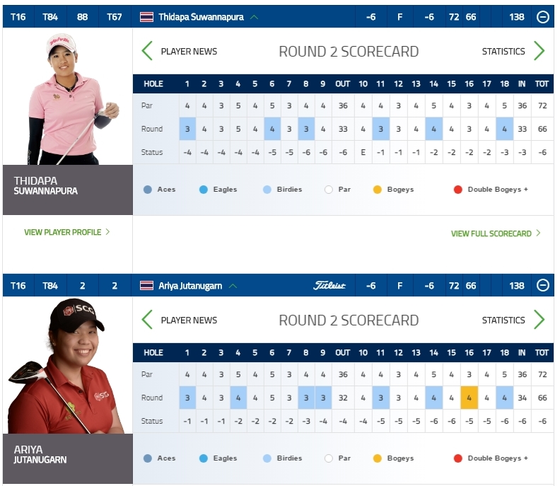 วันนี้โปรแชมเปญ เฌอมาลย์ ทำ score ได้ดีที่สุด ในหมู่นักกอล์ฟสาวไทย ทำได้ถึง 6 under ขึ้นไปอยู่ที่ -10 โปรแจน ทำได้รองลงมาหน่อยนึง ที่ -4 ส่วนโปรแหวน -2 วันนี้โป