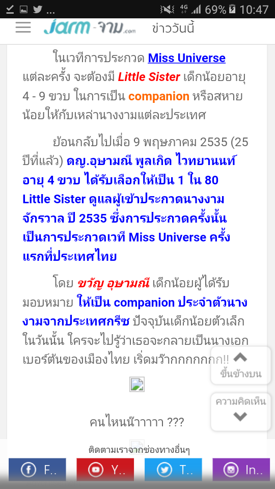 ดูแข่งแฟนพันธุ์แท้ Miss Universe ช่วงเกม3วินาที พึ่งรู้ว่าขวัญ อุษามณี เคยเป็นLittle Sister ในกองประกวดMUในไทยด้วย