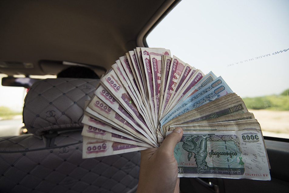 แนะนำว่าให้แลกเงิน USD จากไทยไปแล้วเอาไปแลกเงินจ๊าต (Kyat) ที่พม่า เรท 1 USD = 1,350-1,380 MMK แนะนำเอาแบงค์ 100 USD ใหม่ๆไปแลกจะได้ราคากว่าครับ (ตอนแลกอยากได้แบงค์ใหม่ๆจากเราแต่ตอนเอาเงินพม่ามาให้เน่ายังกะเอาไปเช็ดตูดมา)