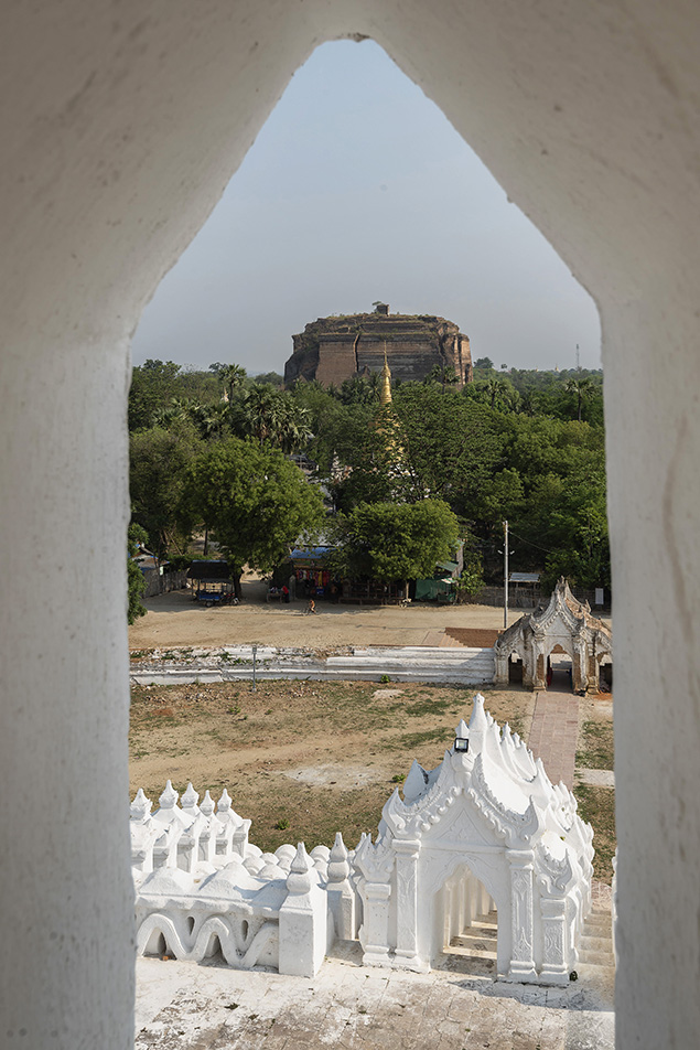 จากบนยอดของเจดีย์สามารถมองลอดรูของใบเสมา(มั้ง)แล้วเห็นเจดีย์มิงกุนที่เราจะไปด้วย ใหญ่โตจริงๆ
