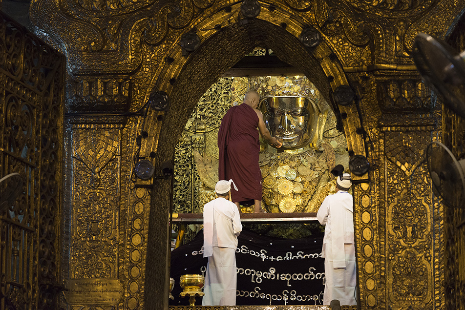 วันต่อมาเราออกกันตั้งแต่ตี 4 เพื่อที่จะไปเข้าร่วมพิธีล้างหน้าพระมหามัยมุณี (Mahamuni Buddha) ถ้าไปช้าจะไม่ได้ดูใกล้ๆนะครับ คนพม่ามากันเยอะมากคนไทยก็เช่นกัน เห็นองค์พระแล้วไม่สงสัยเลยทำไมคนถึงเลื่อมไสขนาดนี้ พระมหามุณียังเป็น 1 ใน 5 สิ่งศักดิ์สิทธิ์ที่สำคัญที่สุดที่เรามาตามเก็บด้วยครับ