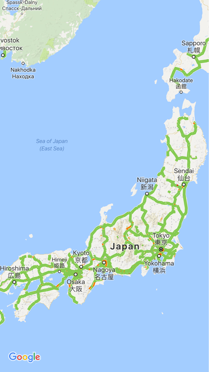 ไม่ว่าจะต่อกับรถ หรือดูในมือถือ ระยะซูมปกติ พวกถนนใหญ่ แต่เป็นถนนสายรอง เส้นการจราจรแถบรถติดไม่โชว์เลย ส่วนซอยใหญ่ ควรมีเส้นจราจร 2 ฝั่ง ก็รวมกันเป็นเส้นเดียว เ