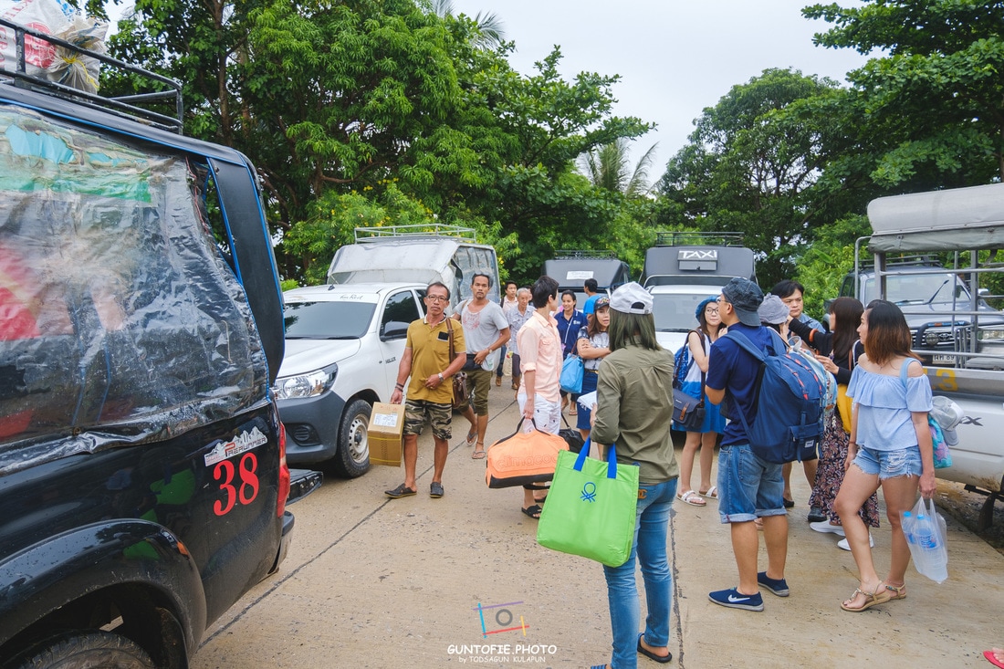 จากนั้นก็เดินไปยังจุดจอดรถ จะมีสองแถวจอดรอสำหรับไปส่งผู้โดยสารตามที่พัก เราเดินไปแล้วถามเลยว่าพักที่นี่ๆ ขึ้นคันไหน พนักงานของเรือก็ชี้ให้ขึ้นรถทันที มืออาชีพมาก รอซักพักเคลียร์รถก็ออกไปส่งผู้โดนสารจนหมด