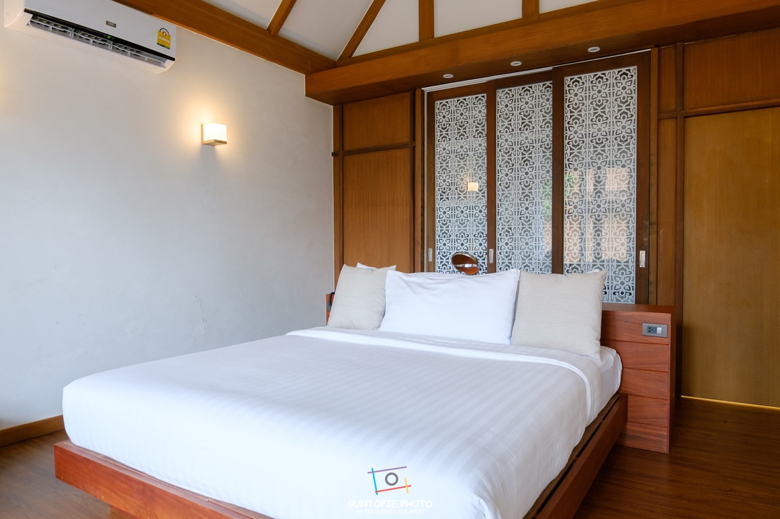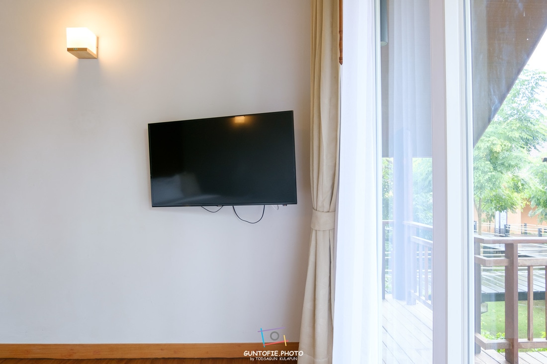 ห้องที่เราพัก คือ Deluxe Villa ห้องไม่ใหญ่มาก สะดวกสบายดี ห้องใหม่เอี่ยม พร้อมสิ่งอำนวยความสะดวก เช่น ตู้เย็น พร้อมน้ำดื่ม กาแฟ โอวัลติน เสื้อคุ้ม ร่ม ไดร์เป่าผม ห้องน้ำมาน้ำอุ่น ที่ฉีดตูด อุปกรณ์อาบน้ำ ทีวี แอร์ และมีพัดลมเพดานให้ด้วย ห้องน้ำที่นี่ใหญ่มากด้วย