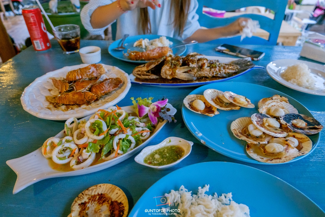 มื้อเย็นของวันนี้เราขี่มอไซค์กันไปกินข้าวที่หมู่บ้านชาวประมงค่ะ ไกลจากที่พักพอสมควร แต่ก็คุ้มที่ไปค่ะ