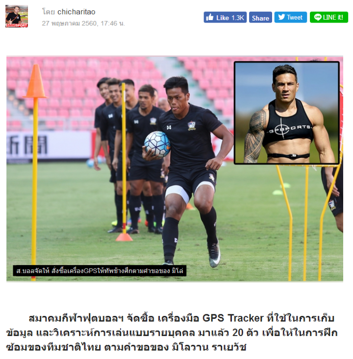 ส.บอลจัดให้ สั่งซื้อเครื่อง GPS ให้ทัพช้างศึกตามคำขอของ มิโล่
