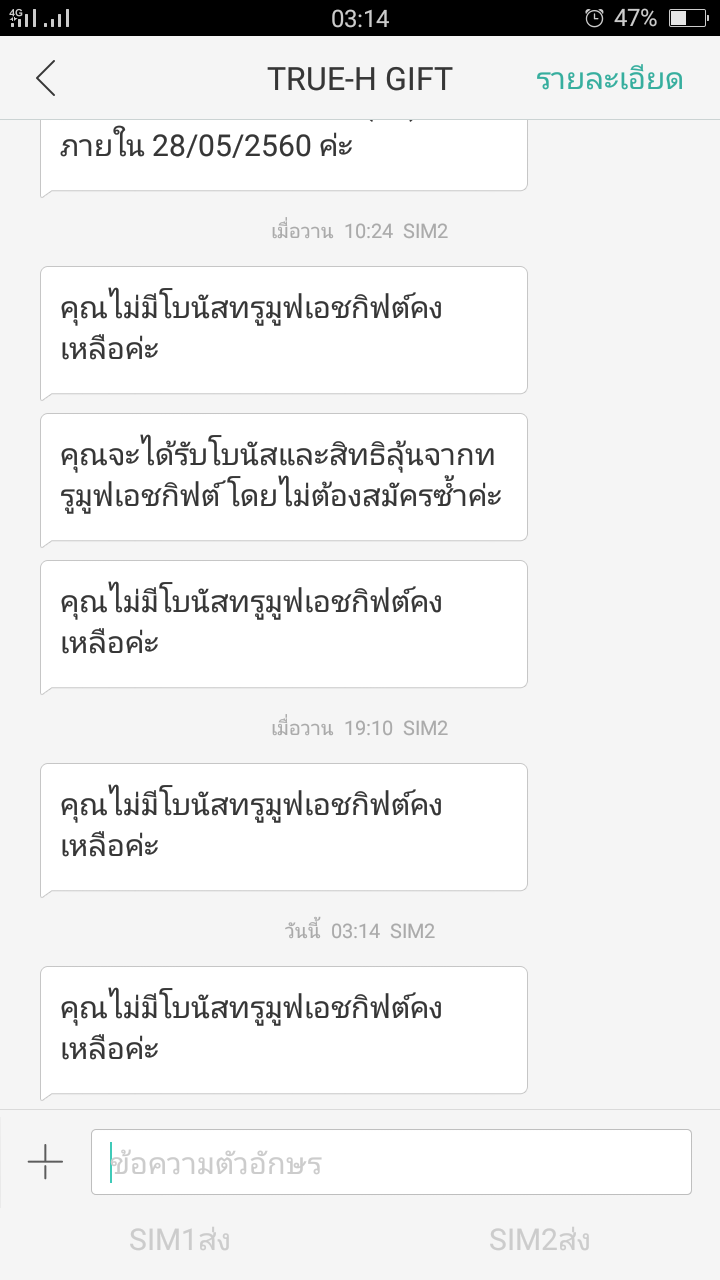 ในแพ็คเกจโบนัสพิเศษของทรูแจ้งว่าเติมเงิน 100 บาทแล้วจะได้ 10 กิ๊ก 1 วันไม่เป็นจริง #true