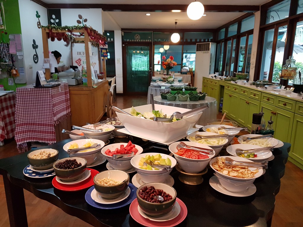 (อาหารที่นี่มีให้เลือกหลากหลายเปลี่ยนเมนูอาหารทุกวัน รสชาติอร่อยถูกปากผมอย่างมาก ทั้งๆที่ผมไม่ได้เป็นคนทานมังสวิรัติ แต่ผมก็ติดใจกับอาหารในสไตล์แบบนี้ สไตล์ของคนรักษาสุขภาพครับ)