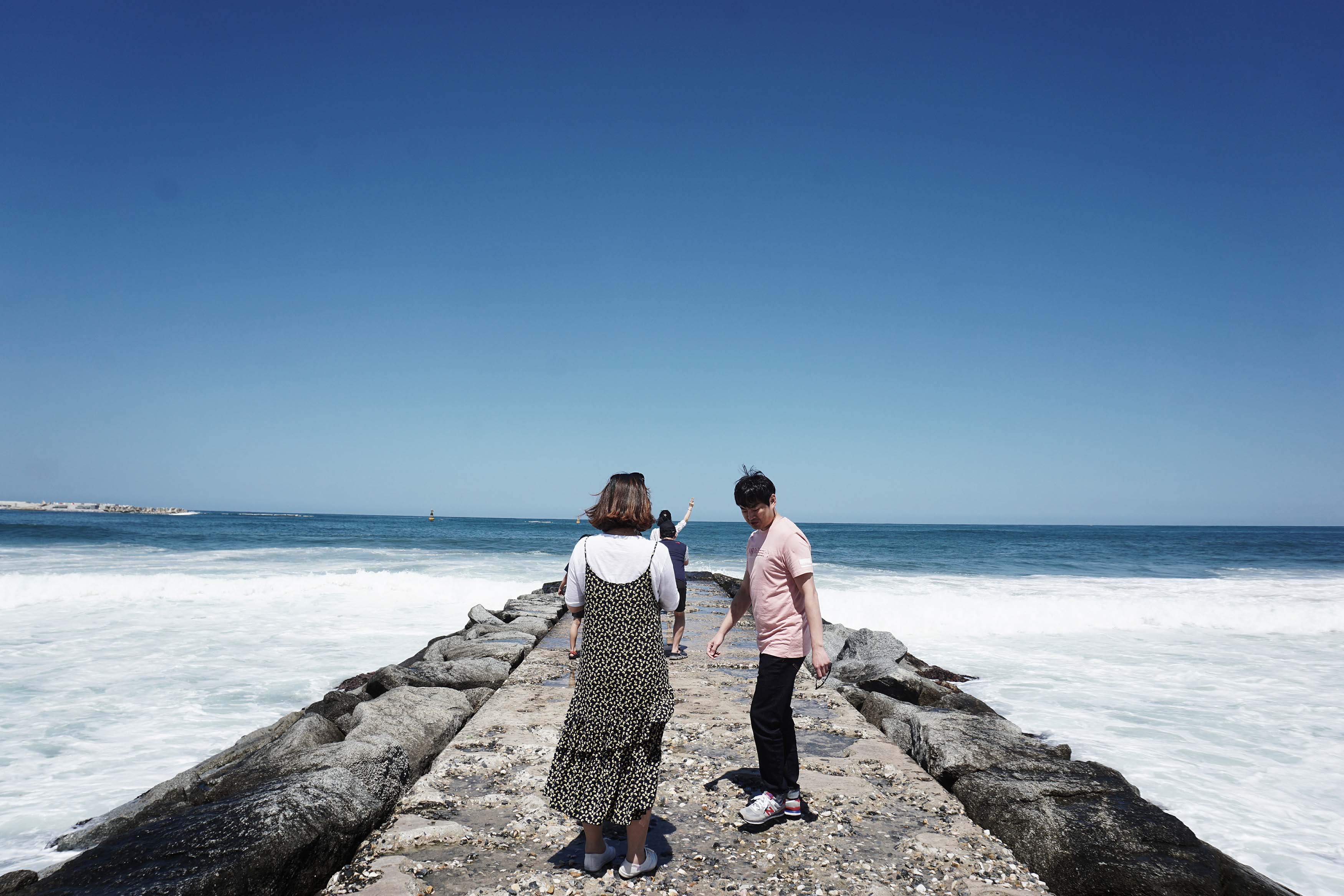 แอบบ่นหน่อย ว่าตรงโซนแลนมาร์กมันจะมีคนคอยต่อคิวเราถ่ายรูปหลายคนใช่มะ รูปจขกท.จะออกมายิ้มเกร็งๆ เกือบทุกภาพเลยอ่ะ เสียใจ 55555 ใจจริงนี่อยากจะมีพร็อบถือช่อดอกไม้แบบจีอึนทัก (นางเอก) มากเลยนะ แต่ขอลาก่อน เห็นคนต่อคิวรอแล้วมันไม่เป็นตัวของตัวเองเลยค่ะคุณ เลยถ่ายพอเป็นพิธี (เน้นหันหลัง) ก่อนจะปลีกวิเวกเดินไปถ่ายอีกจุดเป็นสะพานยื่นออกไปในทะเลเหมือนๆ กัน แต่ไม่มีคนไปถ่ายตรงนั้นเลย และก็จะต่างกันกับจุดแลนมาร์กนิดหน่อยตามรูปเลย