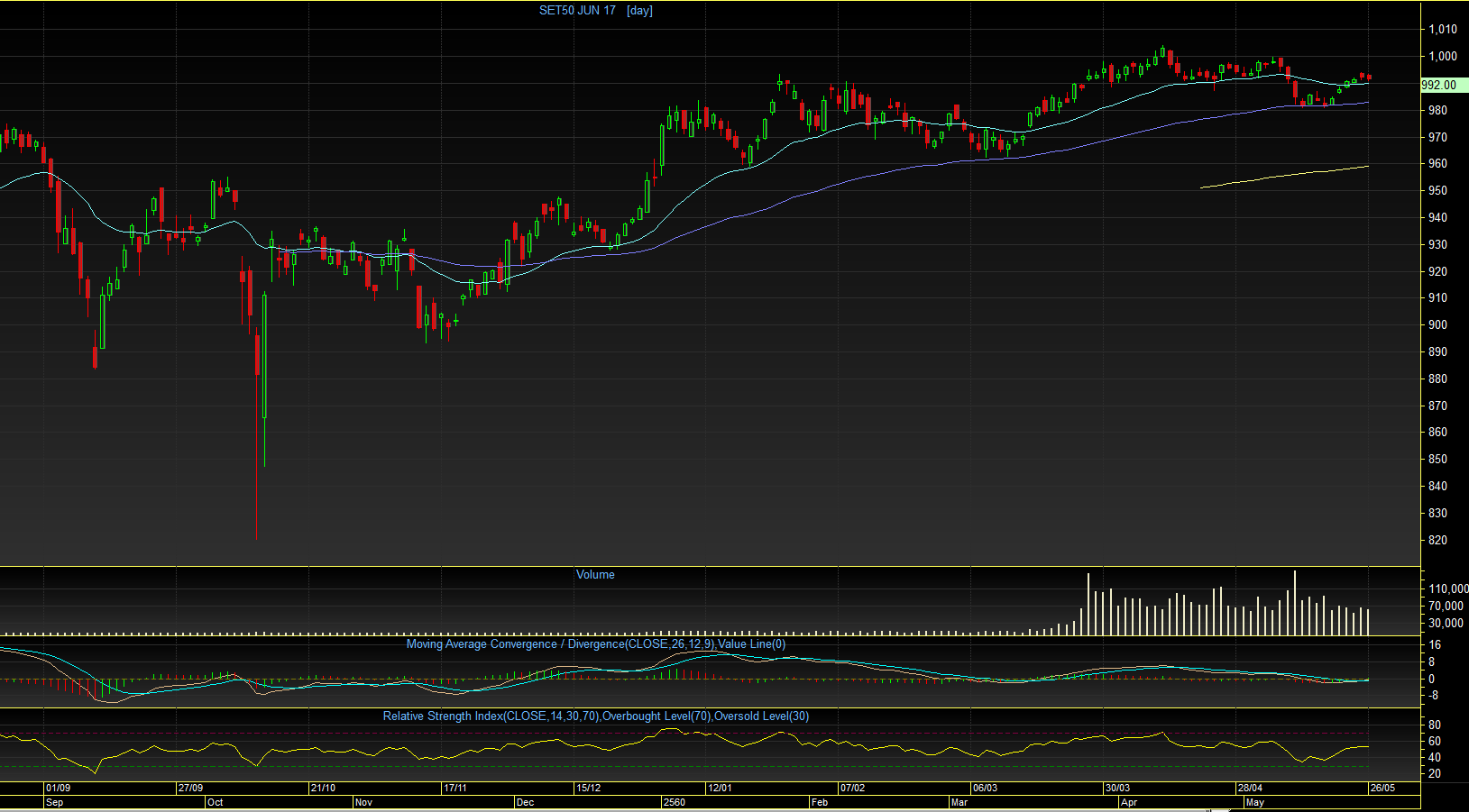 S50M17 TF Day : ตลอดทั้งวันศุกร์ที่ผ่านมา ดัชนียังคงเคลื่อนไหวแกว่งตัวในกรอบแคบๆ (990 - 993 จุด) แม้จะมีความพยายาม