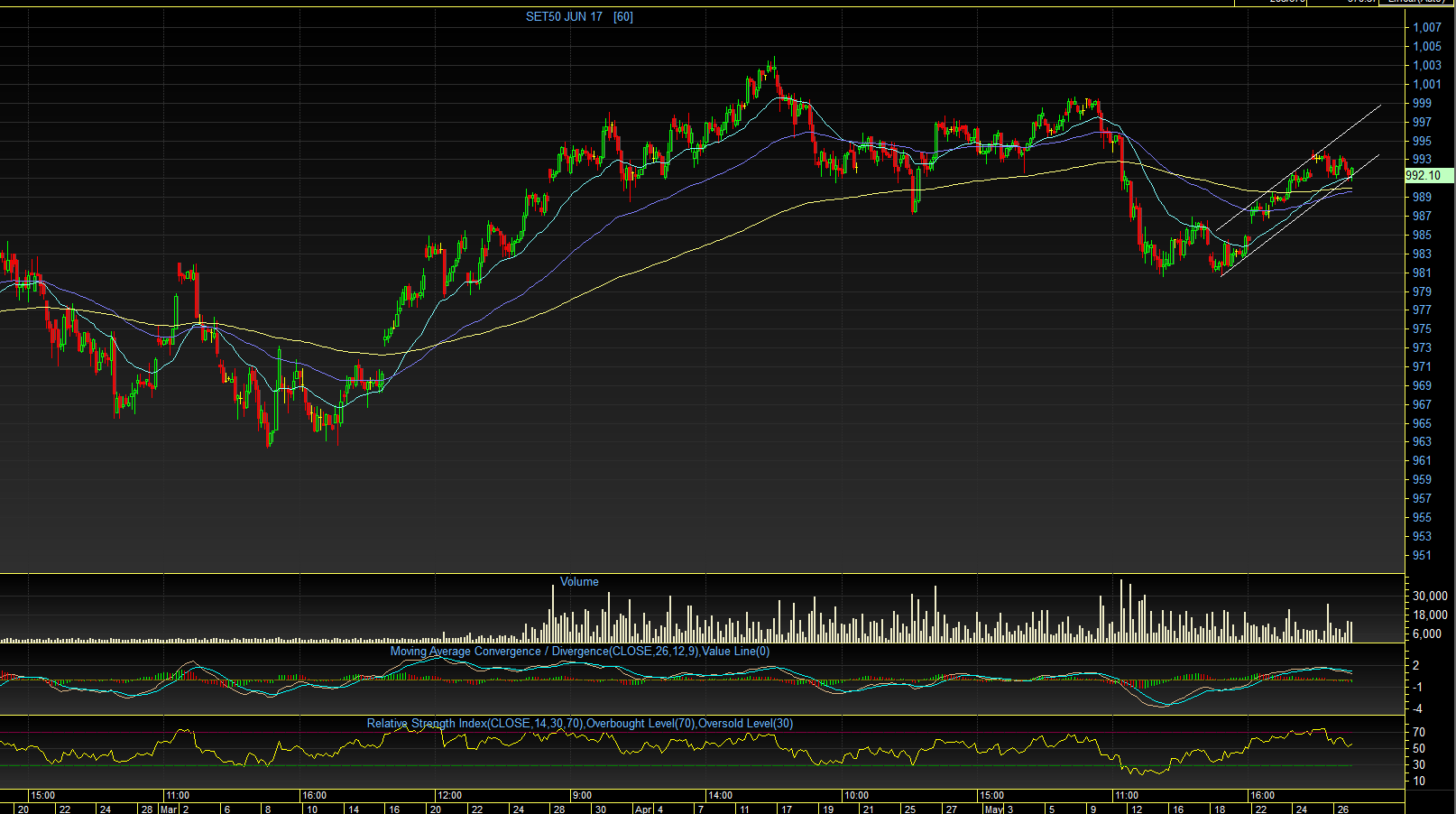 TF60 : เมื่อวานศุกรที่ที่ผ่านมา ดัชนัยังคงเคลื่อนไหวแกว่งตัว Sideway ในกรอบแคบๆ (990 -993 จุด ) แม้จะพยายามขึ้นไป