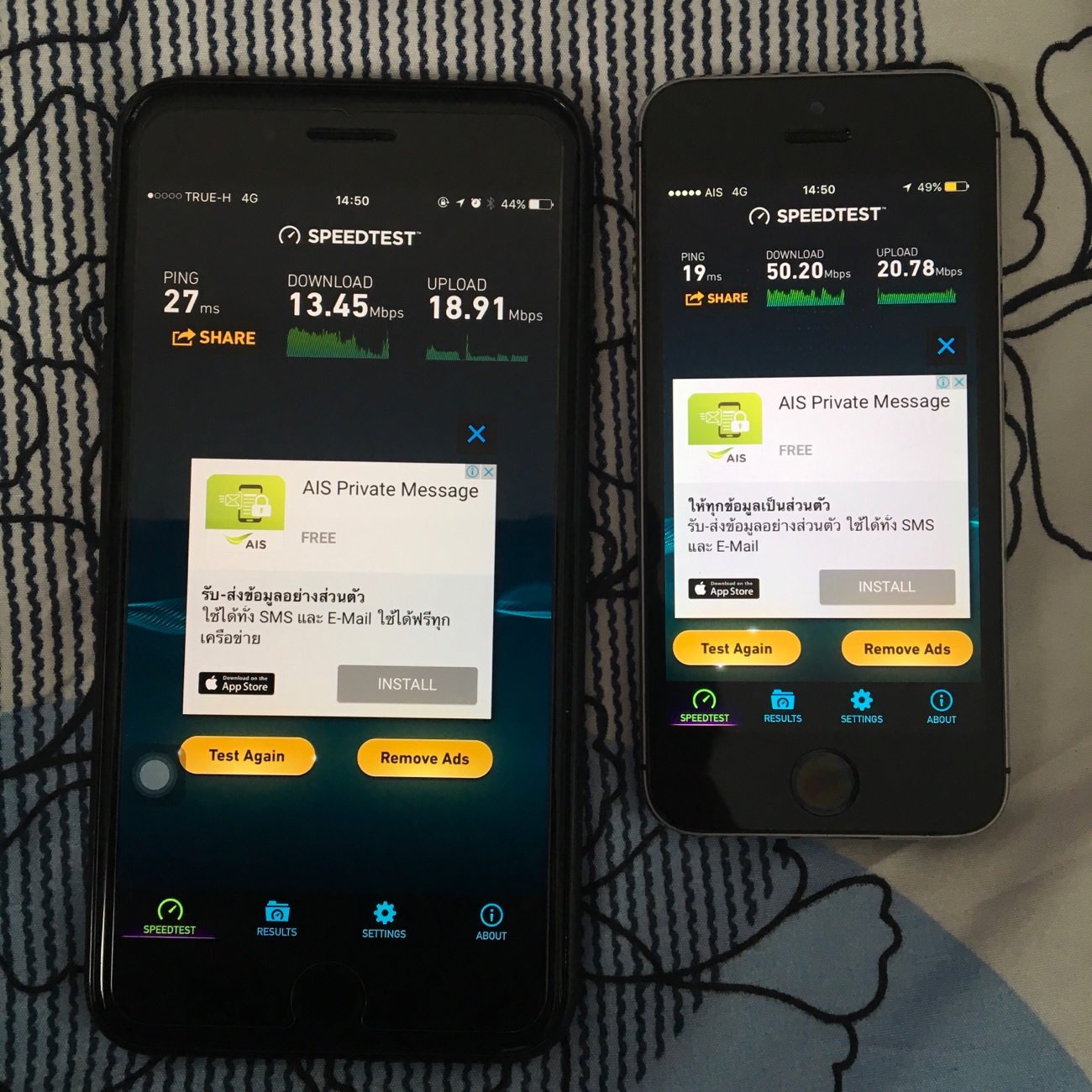 ขนาด Ais ใส่ เครื่อง 5s เน็ตยังแรงไม่ตก ถ้าเอามาใส่ 7 Plus คงได้มากกว่านี้