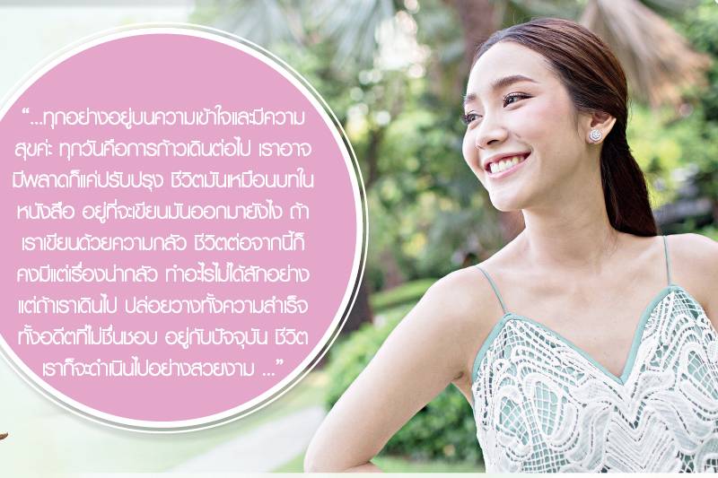 “ทุกอย่างอยู่บนความเข้าใจและมีความสุขค่ะ ทุกวันคือการก้าวเดินต่อไป เราอาจมีพลาดก็แค่ปรับปรุง เราอาจมีวันที่ประสบความสำเร็จมากก็ยินดีกับมัน แต่อย่าไปยึดติด ทุกวินาทีของชีวิตเป็นสิ่งที่มีค่าที่สุด ในวินาทีที่ร้องไห้ ก็ให้รู้ว่าร้องไห้ วินาทีที่มีความสุข ก็ให้รู้ตัวว่ามีความสุข แล้วชีวิตก็จะมีความหมายในทุกวินาที อยู่กับปัจจุบัน ไม่ใช่อดีตคุณเคยพลาด ก็จมอยู่กับข้อผิดพลาดนั้นตลอด จนไม่สามารถมีสิ่งสวยงามเข้ามา มีคนรักเรามาก แล้วถ้าเราทำผิดพลาด คิดว่าเขาอยากเห็นเราจมกองทุกข์ตลอดมั้ย แฟนคลับที่รักมิน พ่อแม่ที่รักมิน รวมถึงคนที่รักมินมากกว่าคนที่ไม่รัก เราจะเลือกแคร์ใครมากกว่า เพราะคนเหล่านั้นเป็นความสุขของมิน และมินเป็นความสุขของเขา สิ่งสำคัญคือเราคงไม่หยุดก้าวเดินต่อไป เพราะชีวิตมันเหมือนบทในหนังสือ อยู่ที่จะเขียนมันออกมายังไง ถ้าเราเขียนด้วยความกลัว ชีวิตต่อจากนี้ก็คงมีแต่เรื่องน่ากลัว ทำอะไรไม่ได้สักอย่าง แต่ถ้าเราเดินไป ปล่อยวางทั้งความสำเร็จ ทั้งอดีตที่ไม่ชื่นชอบ อยู่กับปัจจุบันและคนที่เรารัก ชีวิตเราก็จะดำเนินไปอย่างสวยงาม แม้ในอนาคตจะเป็นยังไง แต่รู้ว่าเรามีความสุข เราเกิดมาเพื่อมีชีวิต ไม่มีใครมีกราฟชีวิตเป็นเส้นตรง ถ้าเป็นเส้นตรงคือคนตาย แต่ถ้ามีขึ้นลงนั่นคือเรามีชีวิตค่ะ”