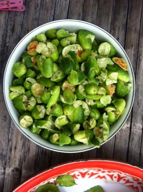 จัดการมันค่ะ ตีเบาๆ ให้แตก ล้างน้ำ เอาเมล็ดออก