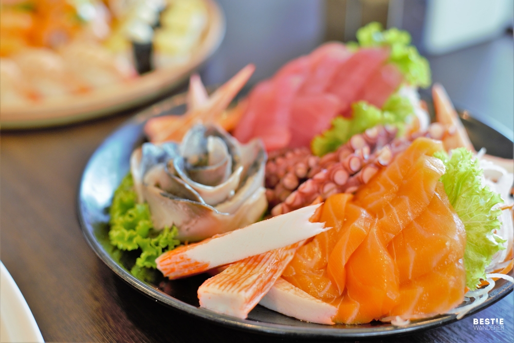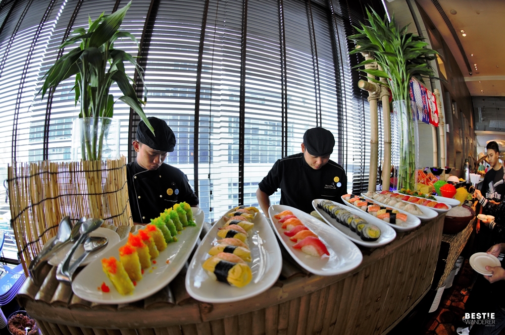 ต่อมาเราไปชมไลน์อาหารญี่ปุ่นกันบ้างค่ะ เป็นอีกหนึ่ง station สุดฮิต ที่ได้รับความนิยมจากแขกที่มาทานเยอะมาก จนเชฟปั้นซูชิกันมือเป็นระวิงกันเลยทีเดียว มีทั้งโรล และซูชิหน้าต่างๆเช่น แซลม่อน ไข่หวาน ปูอัด ทูน่า และซาบะ