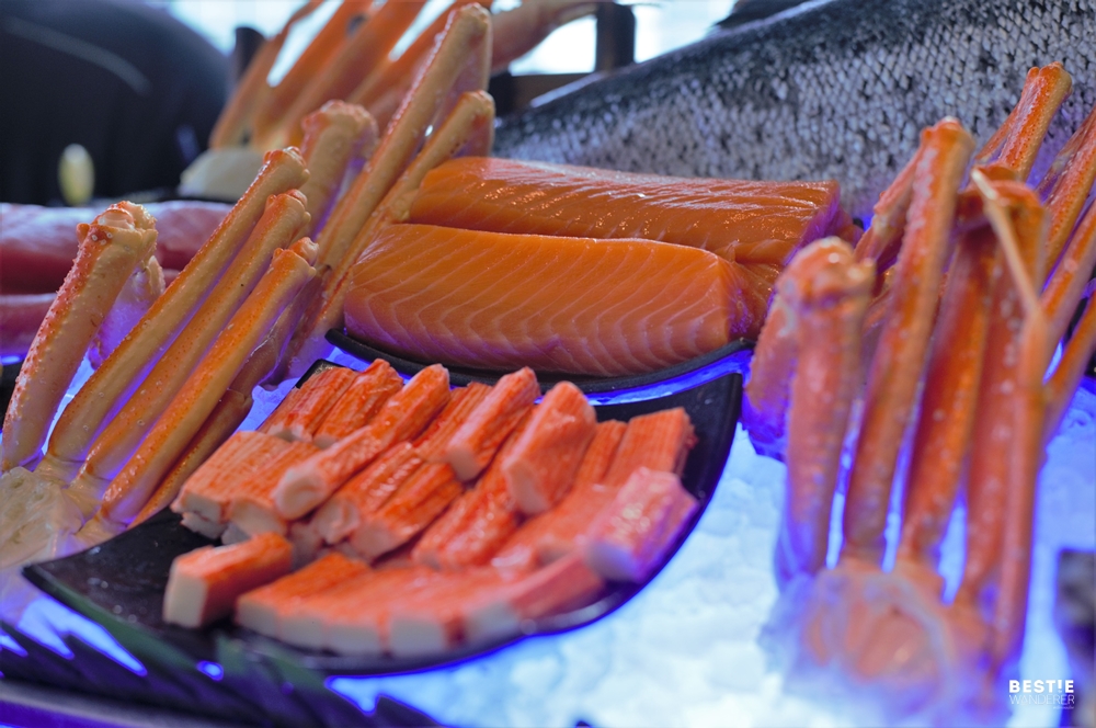 ตักมาเลยค่ะ จะตักเท่าไหร่ กินอะไร เติมกี่รอบ ก็ไม่อั้นจริงๆ เรื่องคุณภาพและความสดนี่ไม่ต้องกังวล เราเป็นคนชอบทานซีฟู๊ดมากเลยลองทุกอย่างที่โรงแรมมี ชอบหอยนางรม ขาปูอลาสก้า และกุ้งเป็นพิเศษค่ะ ห้ามพลาดจริงๆ! ทั้งปูทั้งกุ้งจะหวานในตัวของมันเองจริงๆ ยิ่งได้จิ้มกับน้ำจิ้มซี้ฟู๊ดแซ่บๆของโรงแรม บอกเลยว่าเพลินลื้มมมม ^^