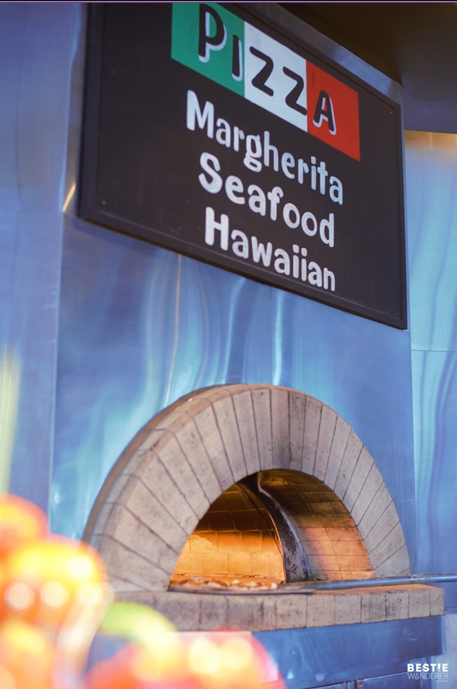 อีกหนึ่งไฮไลท์ที่ไม่พูดถึงไม่ได้เลยคือ Pizza เตาถ่าน ที่อบสดๆใหม่ๆจากเตาให้เราได้เห็นกันเลย มีหน้าต่างๆให้เลือกคือ Margherita, Seafood และ Hawaiian