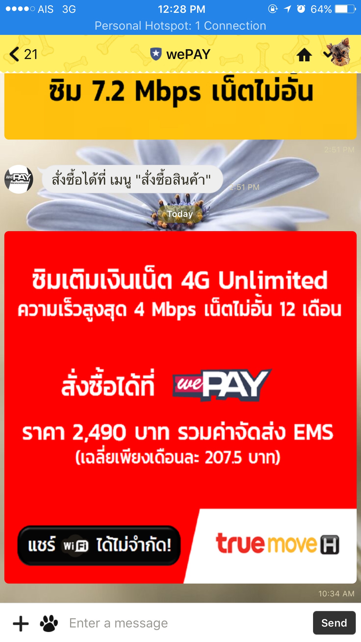 เคยติดต่อ เจ้าหน้าที่ไปมีโปรนึงค่ะเป็นรายเดือนเล่น 4G ได้ไม่จำกัดสำหรับพื้นที่ที่มี 4G แต่ไม่สามารถแชร์ Hotspot ได้ เซ็งเลยค่ะ T^T