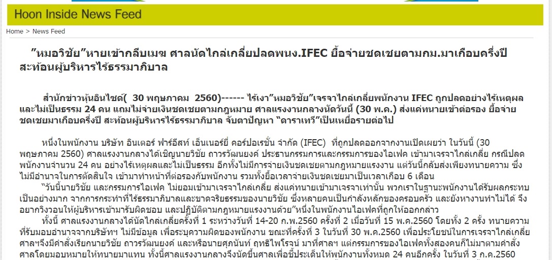 ทนาย IFEC ขอถอนตัวจากคดีแรงงาน และรายย่อยเตรียมเอาผิดกับที่ปรึกษา ใหญ่ !!!