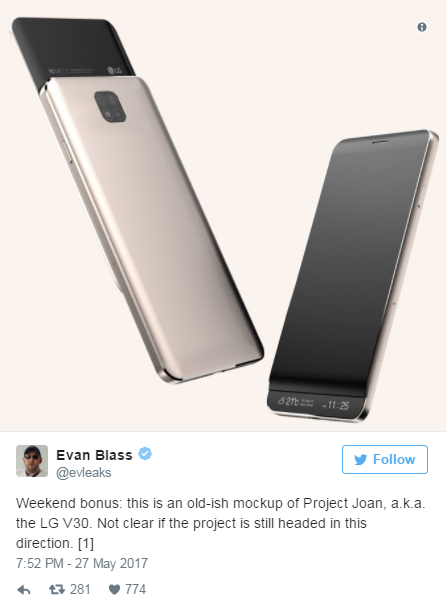 ภาพเรนเดอร์เผยแนวคิด LG V30 มาพร้อมกับหน้าจอแสดงผลรองสไลด์ออก