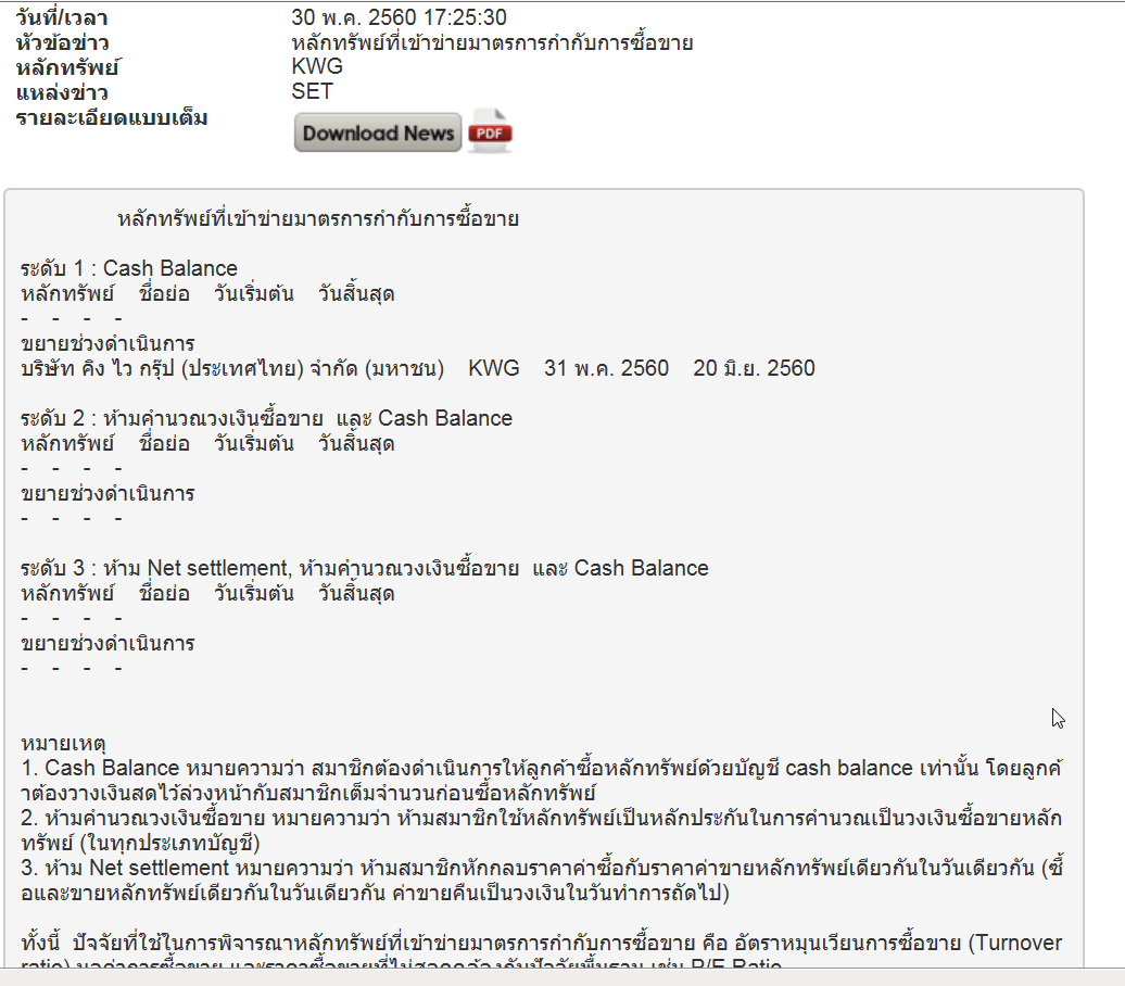 KWG : โดนสอยกลางอากาศด้วยมาตรการ Trading Alert