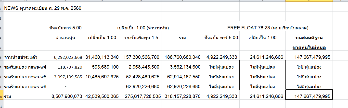 คิดไม่ออก news จะให้เหตุผลอะไร "แตกพาร์" พรุ่งนี้ 31/5/2560 ก่อนเปิดตลาด ไม่ได้รับคำชี้นแจง ต้องติดตามดูจะโดน sp หรือไม่ ในกรณี ตลท ไม่ขัดข้อง จำนวนหุ้นจะเพิ่มขึ้นดังนี้