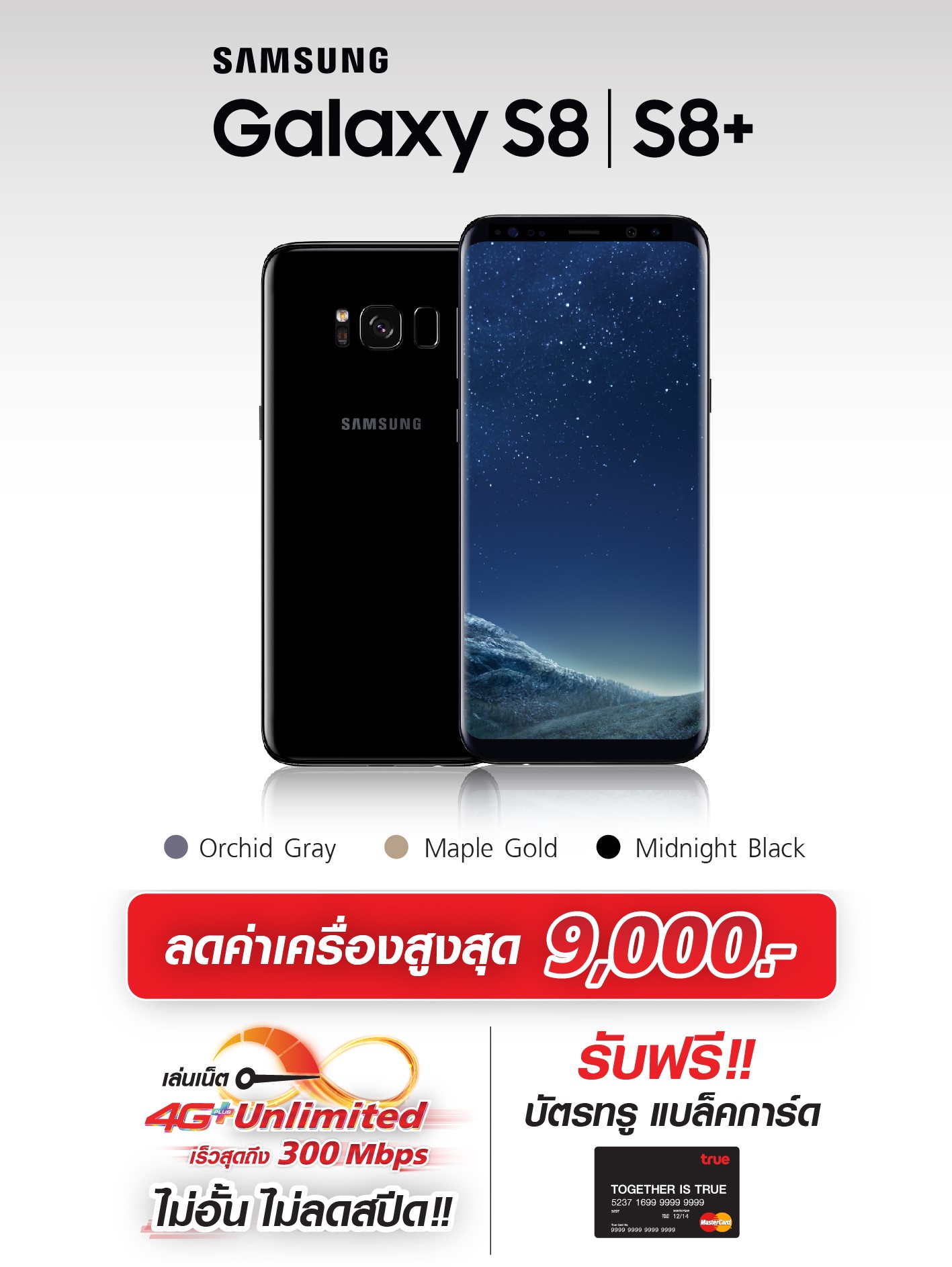 เมื่อวันก่อนพาน้องไปดู S8+ จากอีกค่ายนึง ปรากฎว่าต้องติดโปร 1,099 บาท โทรได้ 400 นาทีได้เน็ต 4G แค่ 16GB ลดค่าเครื่องไป 8,000 บาท เลยเปลี่ยนใจพาไปดูที่ trueshop ราคาเท่ากันเลยแต่ได้เน็ต 4G ไม่จำกัดเต็มสปีดไม่ลดความเร็ว เลยถือโอกาสได้เปิดเบอร์ใหม่ใช้เลย เพราะอยากได้เน็ตไม่จำกัด ในราคาลดค่าเครื่อง 8,000 เท่ากัน ถ้าใจเย็นรอย้ายค่ายจะได้ลดเพิ่มอีก 1,000 แต่น้องผมใจร้อน อยากได้ทันทีเลยยอมเปลี่ยนเบอร์ แล้วค่อยไปเปลี่ยนเบอร์เดิมเป็นเติมเงินแล้วใส่ไว้ในซิม2ทีหลัง