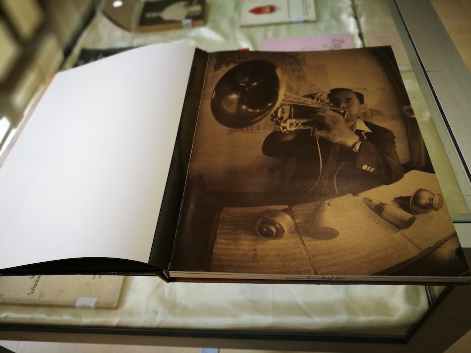 ในเล่มจะมีข้อความอธิบายวิธีที่ทรงฉายภาพด้วยครับ เช่นภาพที่ทั้งผมและอีกหลายๆ คนคงเคยมีความคิดว่ามีคนอื่นเป็นผู้ถ่าย ไม่คิดว่าจะเป็นพระองค์ท่านเองที่ทรงฉายเอง คือภาพทรงดนตรี