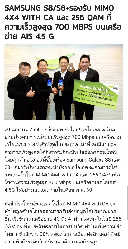 ถาม AIS ครับ วันนี้สิ้นเดือน พ.ค. 60 แล้ว 4X4 MIMO with CA เร็วสูงสุด 700 Mbps เปิดใช้หรือยังครับ