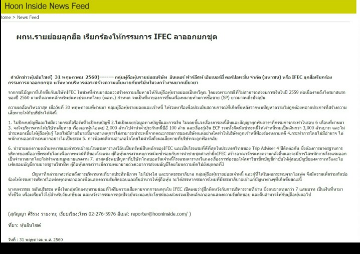 รายย่อย IFEC รวมตัวไล่ กรรมการ ให้แสดงสปิริต ออกยกชุด