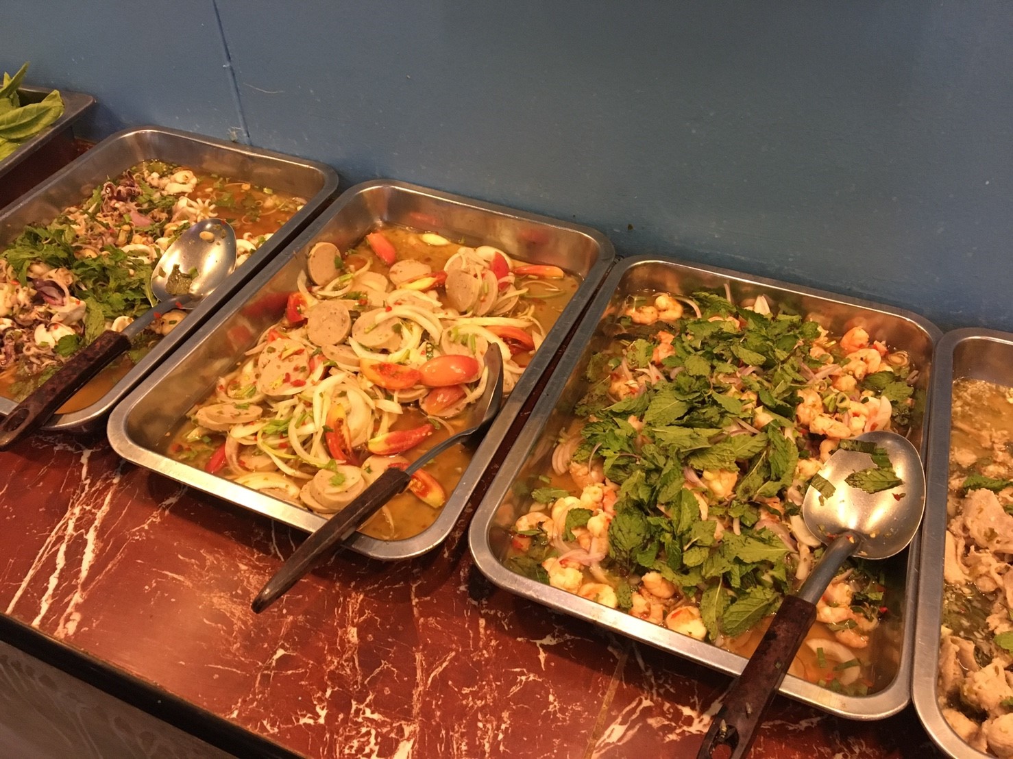 ตลาดหลัง รพ ภูมิพล ที่เดิม วันนี้ ผัดพริกปลาดุกกรอบ พริกไทยสด โปะไข่ดาว 30 แซ่บเกินราคา สุกี้ทะเล 27.50 ทั้งกุ้งทั้งหมึก อร่อยมาก ปลาแซลมอนย่าง เทริยากิ 80 อร่อยจนต้องกินซ้ำ ๆ ยังเหลื