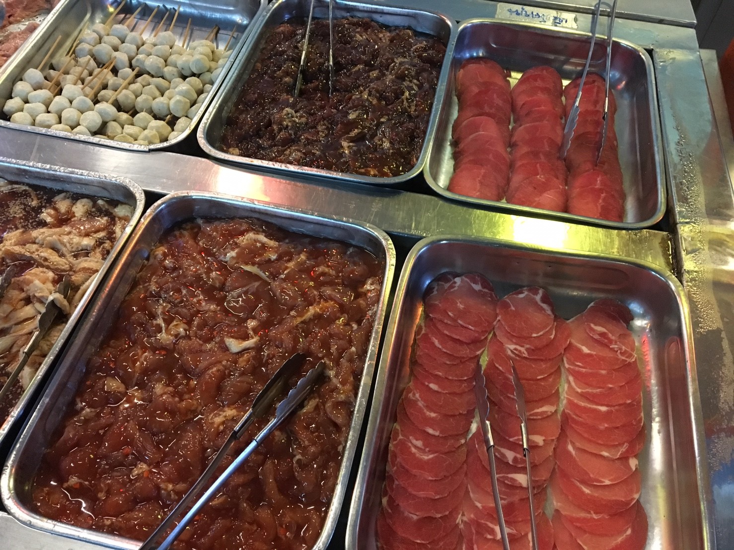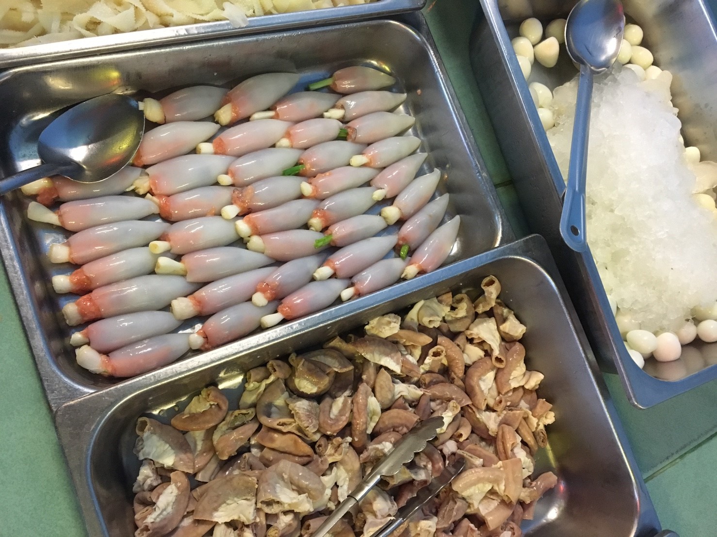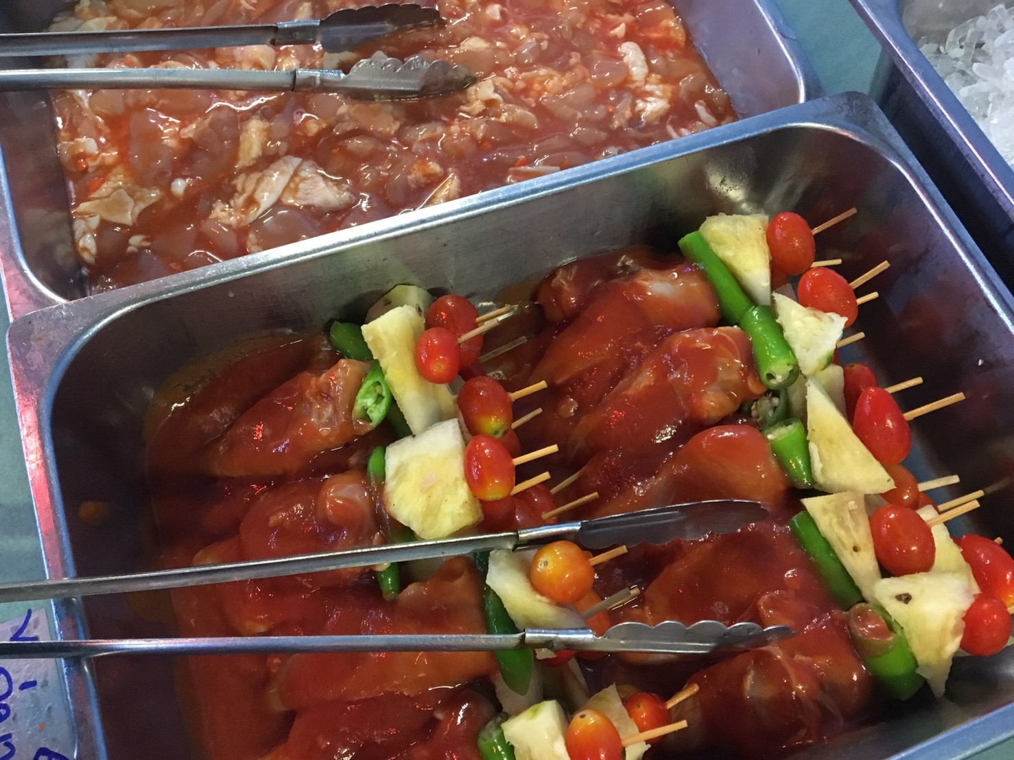 พอได้โต๊ะแล้วก็ไปเดินดมชมไล่ดูว่าหนูจะกินอะไรดีนะ เริ่มที่อาหารในถาดเห็นแล้วก็ปาดเข้าไปชม