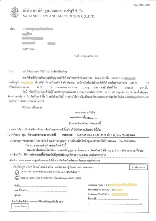 ปล.2 ทางดีแทค ไม่ได้ประสานงานกับ บจก.สหนิติกฎหมายและการบัญชี ที่ส่งใบแจ้งหนี้มาหรอคะ??