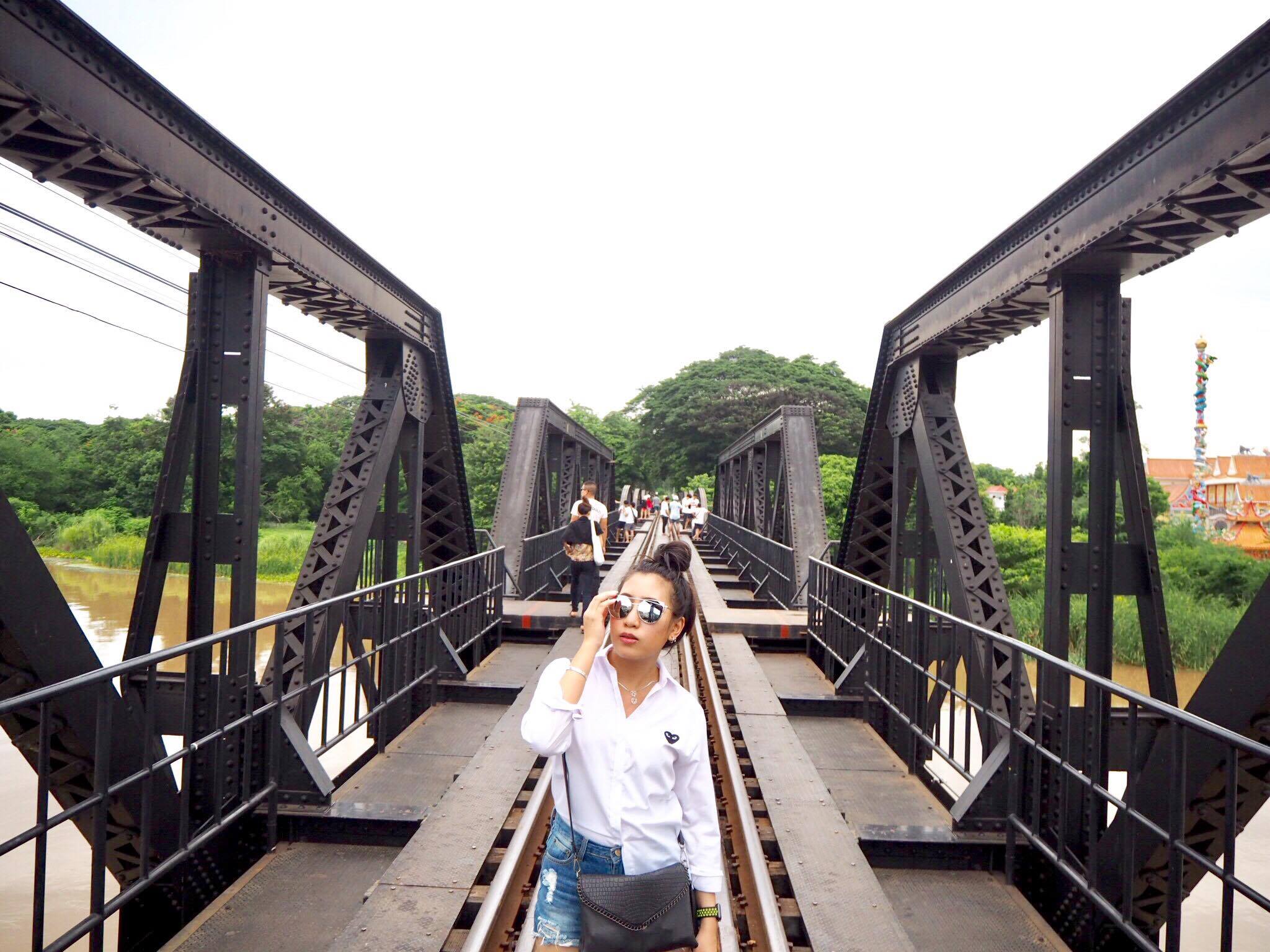 ไปต่อเลยไม่เหนื่อยไม่หยุดพลังเยอะขับตรงมาอีกนิดมาถ่ายรูปที่สะพานข้าวแม่น้ำแคว แดดไม่ร้อนมากเดินได้จนสุดสะพาน นักท่องเที่ยวทั้งชาวไทยชาวต่างชาติเดินกันเยอะพอสมควร มาดูรูปกันดีกว่าพูดไปไม่เห็นภาพ