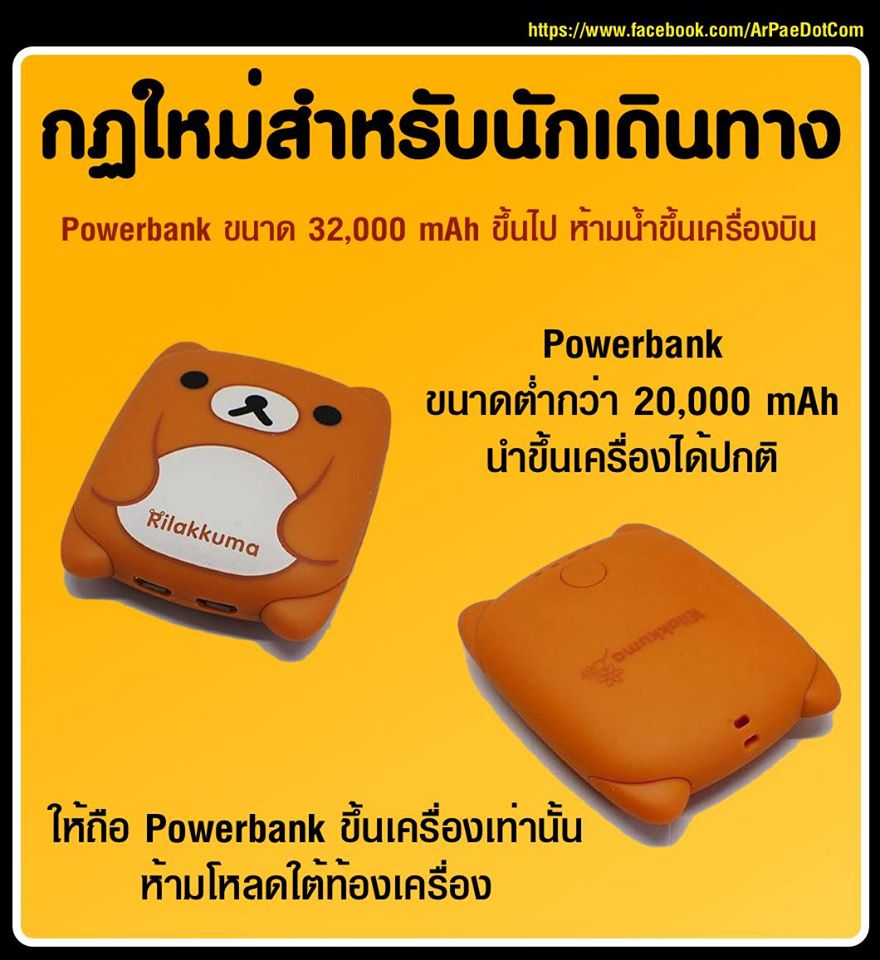 โน็ตบุคที่มีแบตเตอรรี่และ Power Bank ใส่กระเป๋าถือขึ้นเครื่องเท่านั้น ห้ามโหลดใต้ท้องเครื่องเด็ดขาด