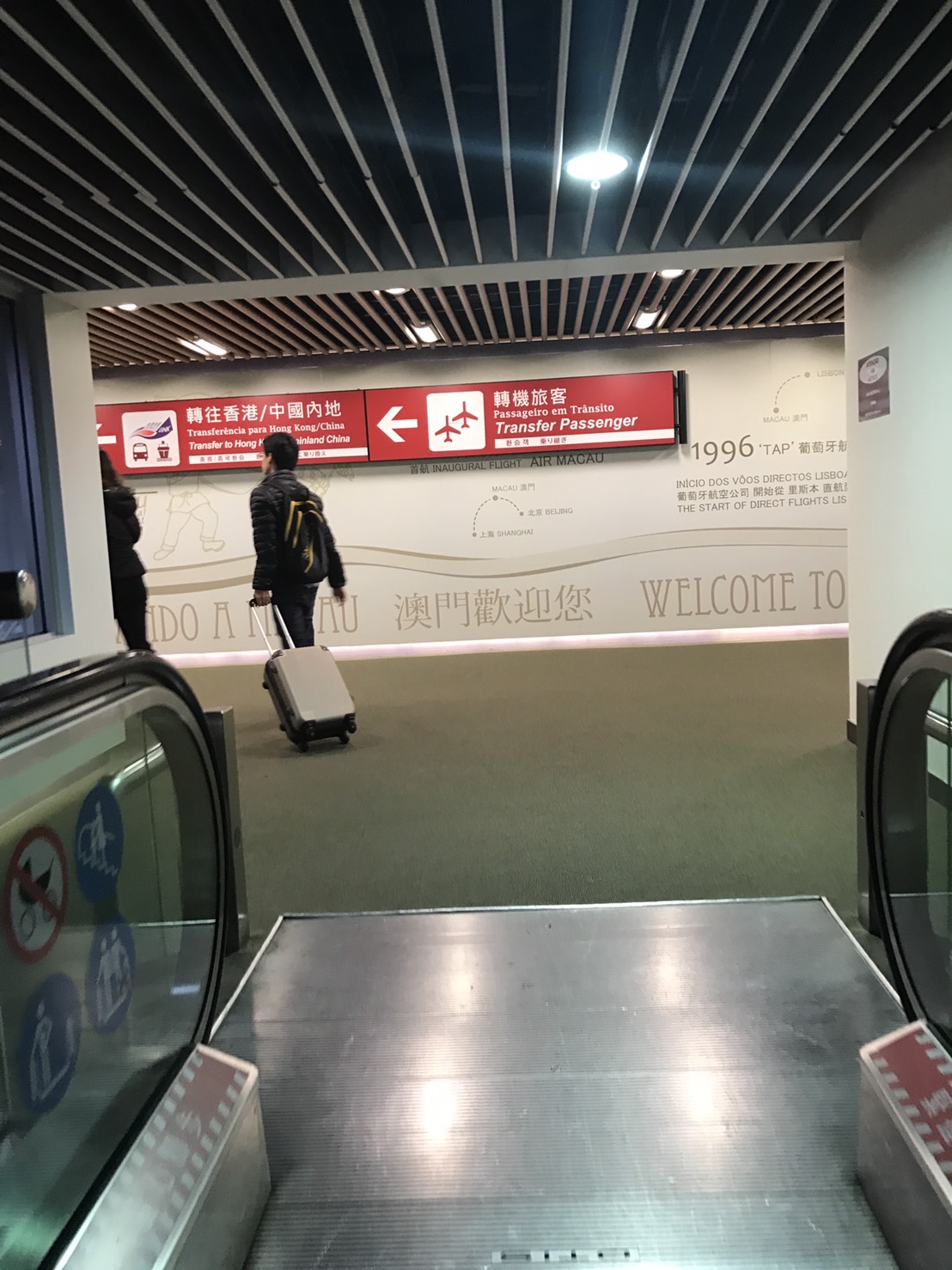 ถ้าใครที่ต้องเปลี่ยนเครื่องไปที่อื่นเหมือนเรา วิธีง่ายๆ คือ จะมีป้ายสีแดงเขียนว่า Transfer Passenger เดินตามๆ เขาไปจนถึงจุดตรวจ ตม.มาเก๊า ไม่ต้องใช้ใบผ่าน ตม.มาเก๊า ซึ่งคนที่เปลี่ยนเครื่องไปปักกิ่งค่อนข้างน้อย แต่ก็ควรรีบหน่อยนะคะ