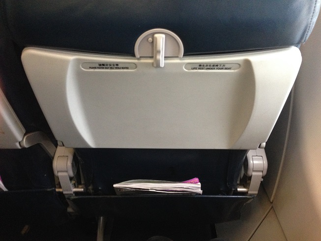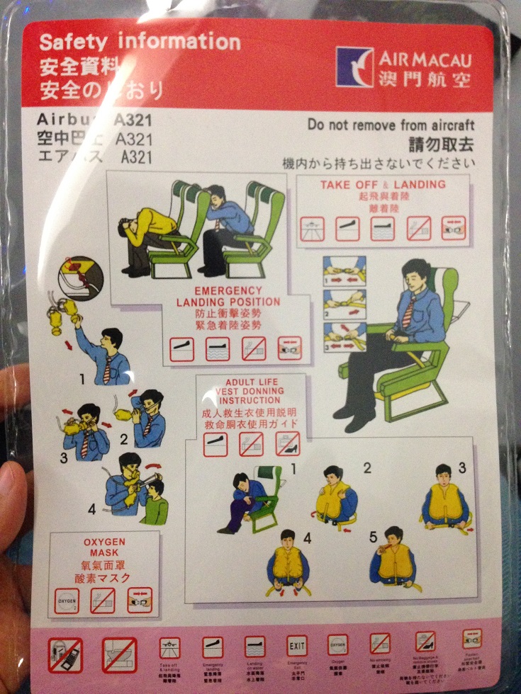 ส่วนเราโชคดี แอร์กราวน่าจะออกตั๋วที่นั่งซ้ำกับคนมาเก๊า แอร์บนเครื่องแก้ปัญหาโดยเชิญเรา ย้ายที่นั่งจาก Economy Class ไป Business Class แบบงงๆ นั่งติดประตูทางออกเลย ^^ (แอบกรี๊ดในใจ)